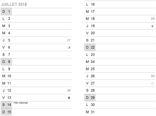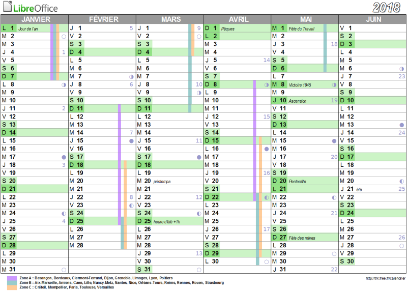 ✓ affichage optionnel des zones scolaires ou congés, personnalisable