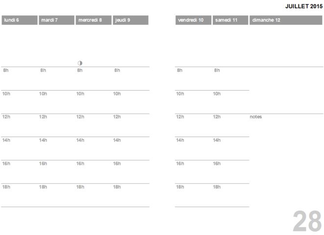✓ livret 112 pages, 1 semaine par double page impression sur 14 feuilles A4 recto/verso