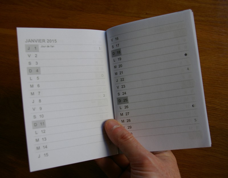 ✓ petit calendrier format A6 (10,5 x 15 cm)